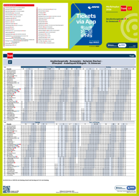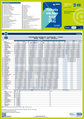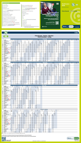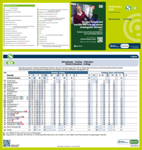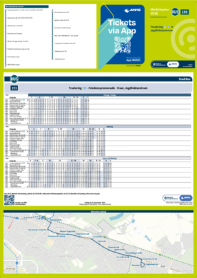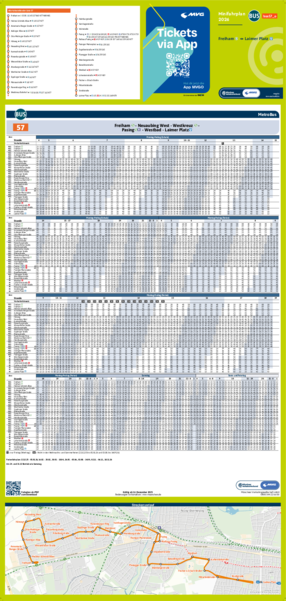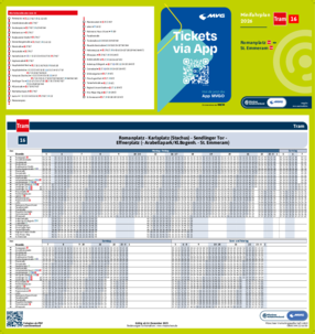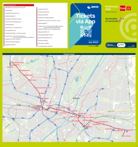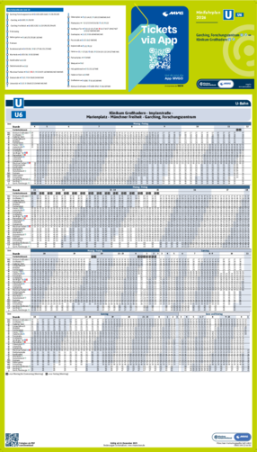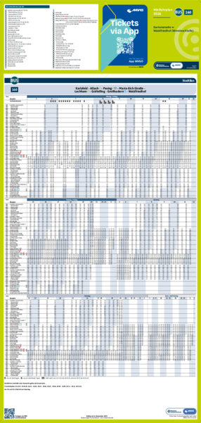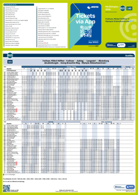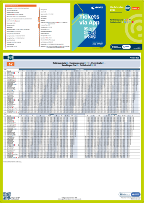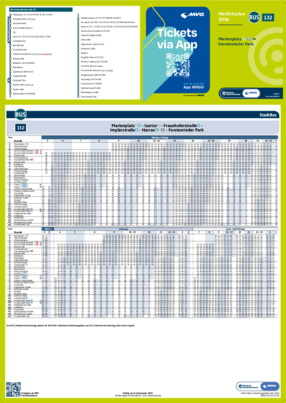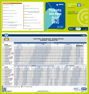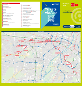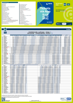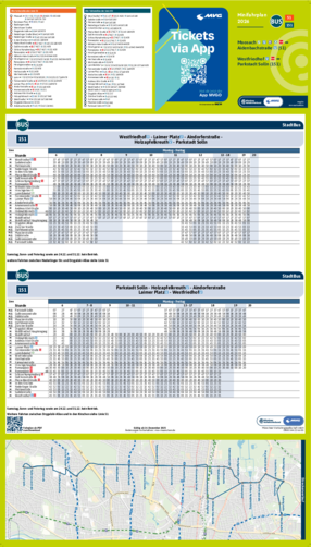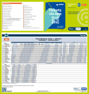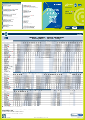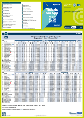 Wichtiger Hinweis: Alle gedruckten Fahrplanmedien und die PDF-Dateien für Minifahrpläne und Gesamtfahrplan bilden den regulären Jahresfahrplan ab. Fahrpläne können sich jedoch während eines Jahres ändern, wenn z. B. Baumaßnahmen den Linienweg und die Fahrzeit beeinflussen. In solchen Fälle sind die aktuellen Fahrpläne über die MVV-Auskunft unter dem Menüpunkt „Fahrplanbuch“ als einzelne PDF-Dateien abrufbar. Nicht aufgeführte Linien stehen mit Stand Dezember 2026 als PDF-Online-Version in unserer MVV-Auskunft zur Verfügung. Den Gesamtfahrplan 2026 können Sie sich hier als PDF-Datei herunterladen.